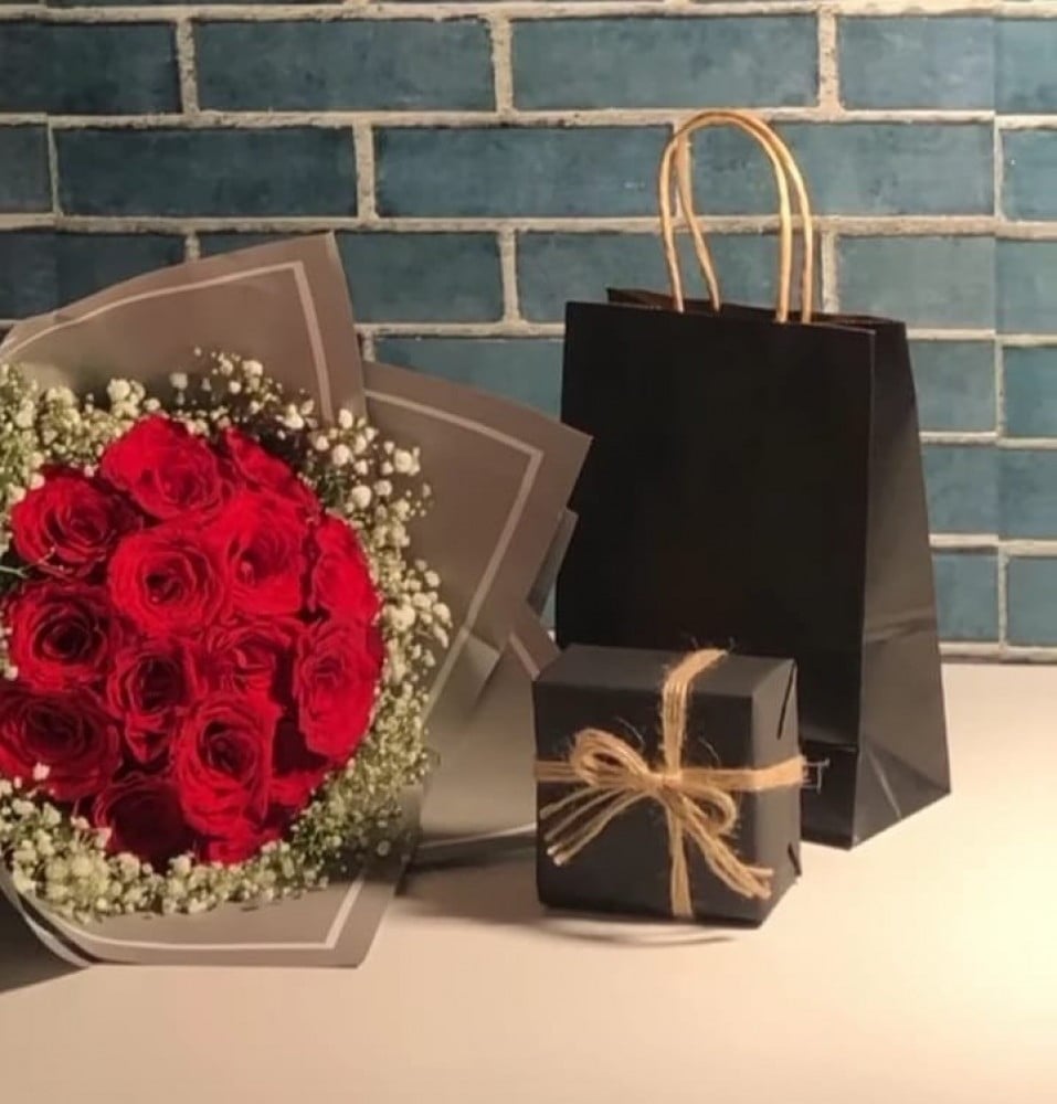 تغليف وبوكيه مع كرت اهداء حسب الطلب