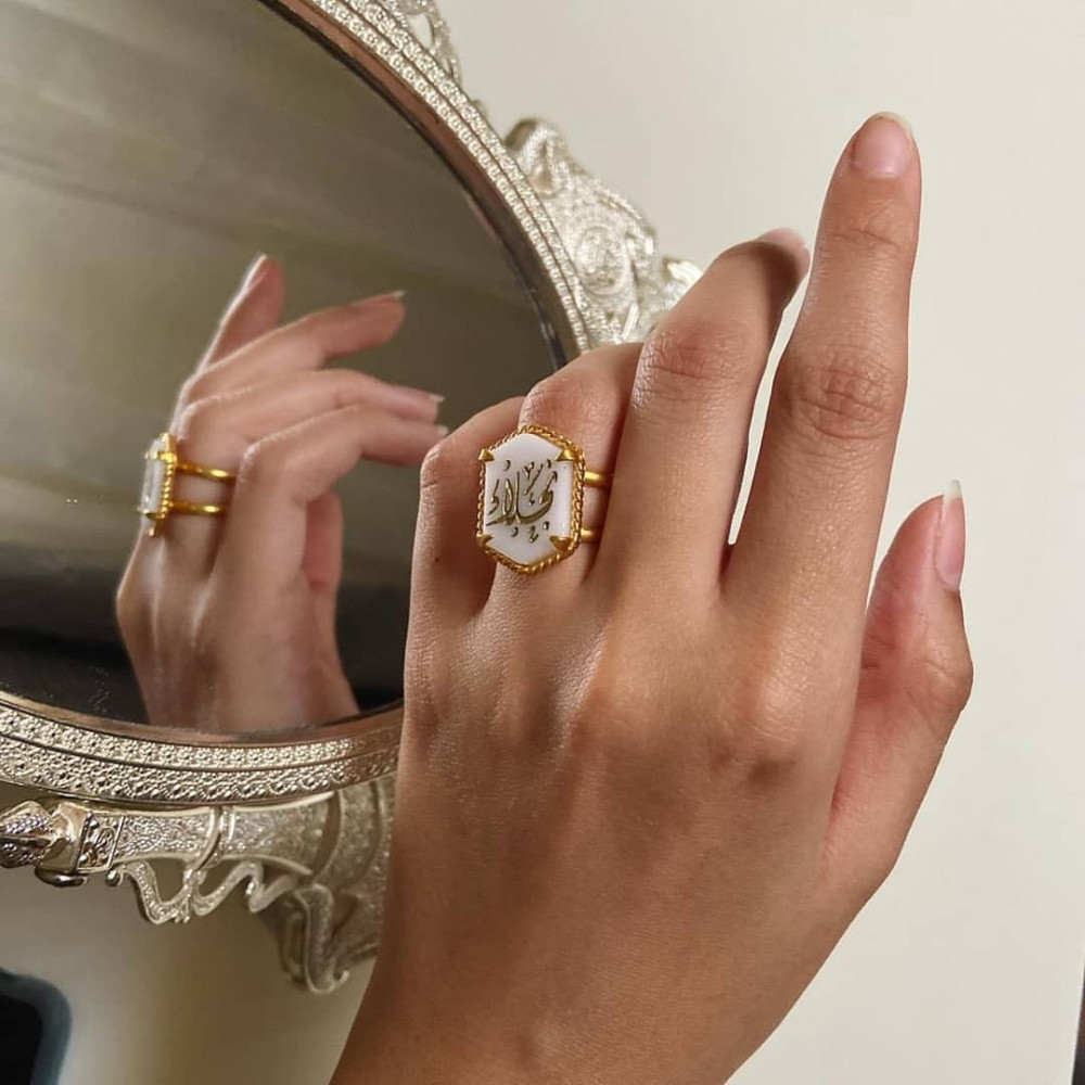 خاتم بالاسم من الصدف الافريقي الطبيعي