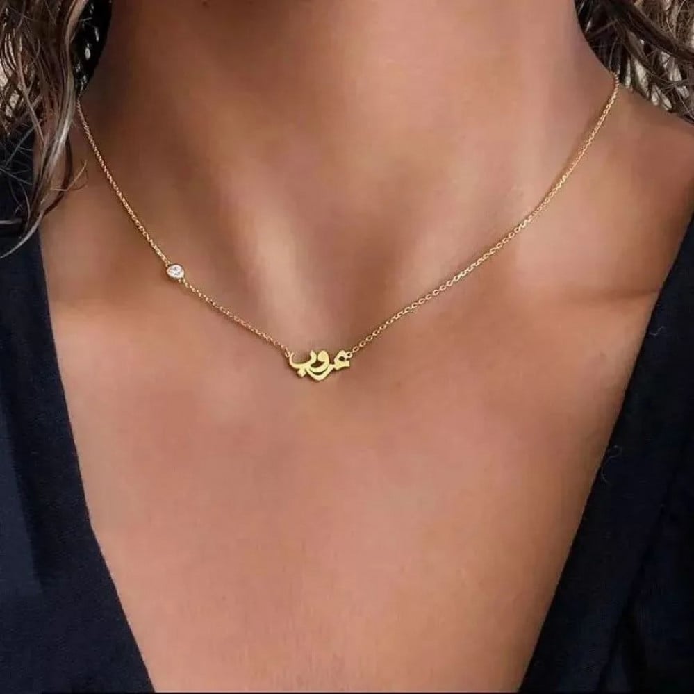 سلسال بالاسم مع فص الزركون مطلي ذهب - متجر عهود