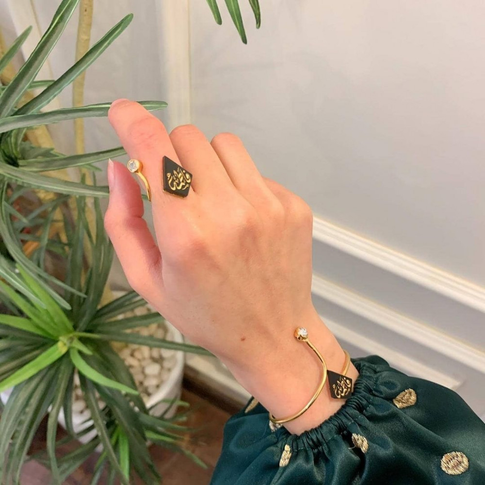 اسوارة وخاتم الاسم حجر مثلث اسود - متجر عهود